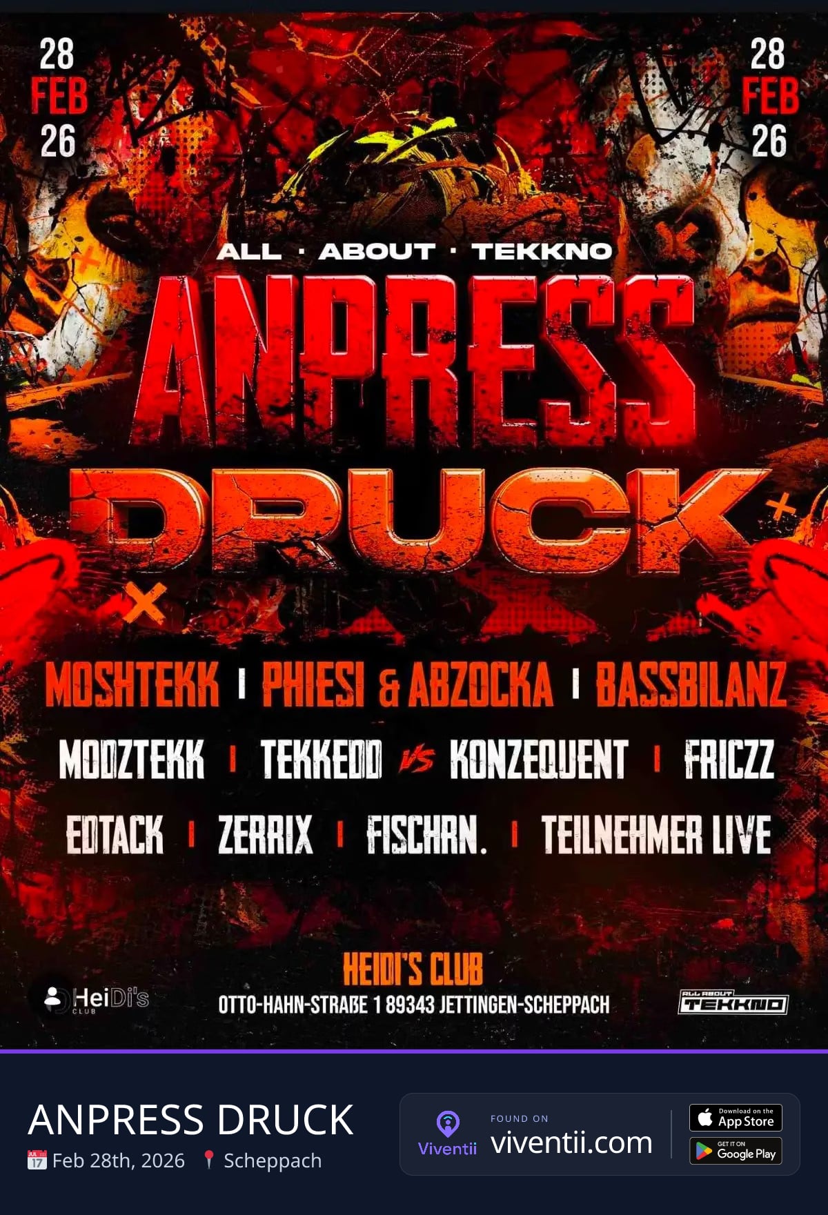 The global "All About Tekkno" movement finds its electrifying nexus on February 28, 2026, at Heidis Club in Scheppach, presenting ANPRESS DRUCK. Prepare for an unforgettable night solely dedicated to the most pulsating Tekkno beats. Heidi's Club is set to unleash a monumental lineup guaranteed to ignite the dance floor.