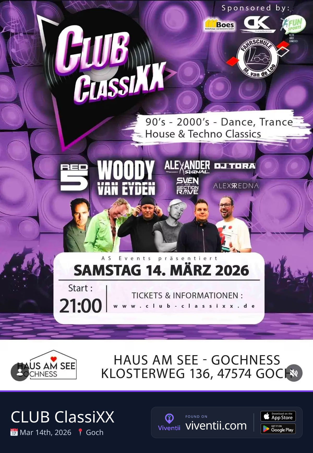 Step back in time to the golden era of electronic music with CLUB ClassiXX at Haus am See Gochness! On Saturday, March 14, 2026, starting at 21:00, prepare for an unforgettable night featuring the best of 90's and 2000's Dance, Trance, House, and Techno Classics.