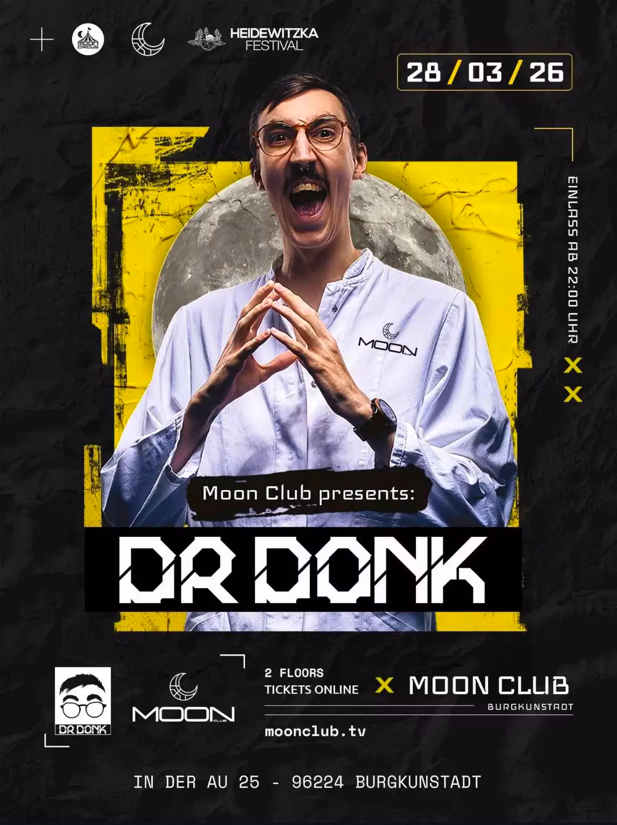 Moon Club presents a night of pulsating beats with Dr Donk! Get ready to immerse yourself in an electrifying atmosphere across 2 dynamic floors at Burgkunstadt's premier party destination. Join us on March 28, 2026, for an unforgettable experience where the music takes center stage. Doors open at 10 PM. This adults-only event promises a high-energy night you won't want to miss.