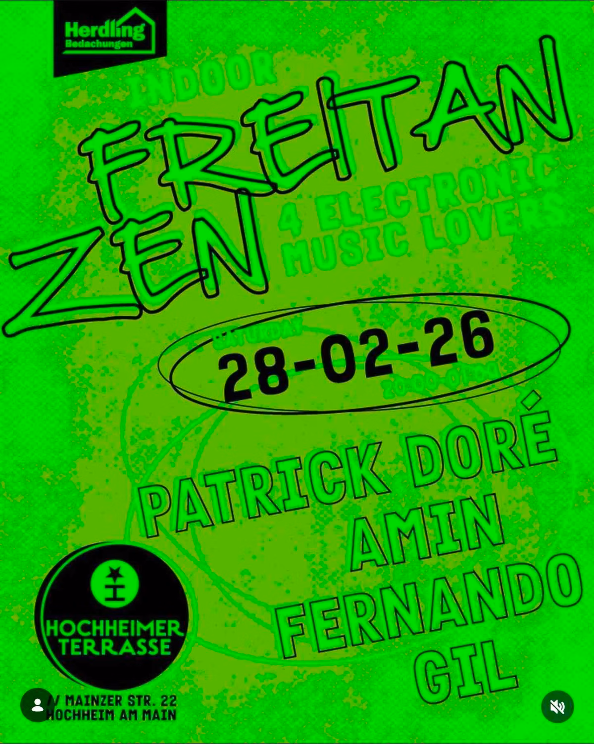 An electrifying night awaits electronic music lovers at FREITAN ZEN on February 28, 2026, at Hochheimer Terrasse in Hochheim am Main. Dive into an immersive indoor party experience designed exclusively for adults.Get ready for an unforgettable sound journey with an exceptional lineup featuring Patrick Doré, Amin, and Fernando Gil. These maestros of electronic beats will set the stage for a vibrant atmosphere, ensuring the dance floor is alive all night long.Located at Mainzer Str. 22, the Hochheimer Terrasse transforms into the ultimate destination for deep rhythms and pulsating energy. Join us for a unique gathering where passion for electronic music unites.