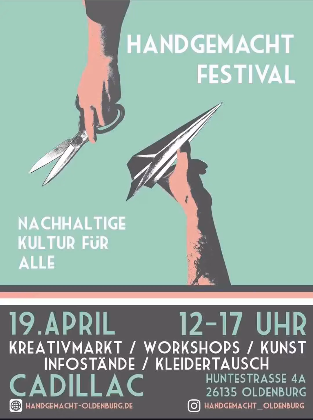 A hub of creativity and sustainable living unfolds at the HANDGEMACHT FESTIVAL. On April 19, 2026, from 12:00 to 17:00, Cadillac Oldenburg transforms into a vibrant space where art, craft, and conscious consumption converge. Explore a diverse creative market, participate in engaging workshops, discover insightful art info booths, and find new treasures at the clothing exchange. This festival truly embodies "Sustainable Culture for All," offering a unique experience for the entire community at HUNTESTRASSE 4A, Oldenburg.