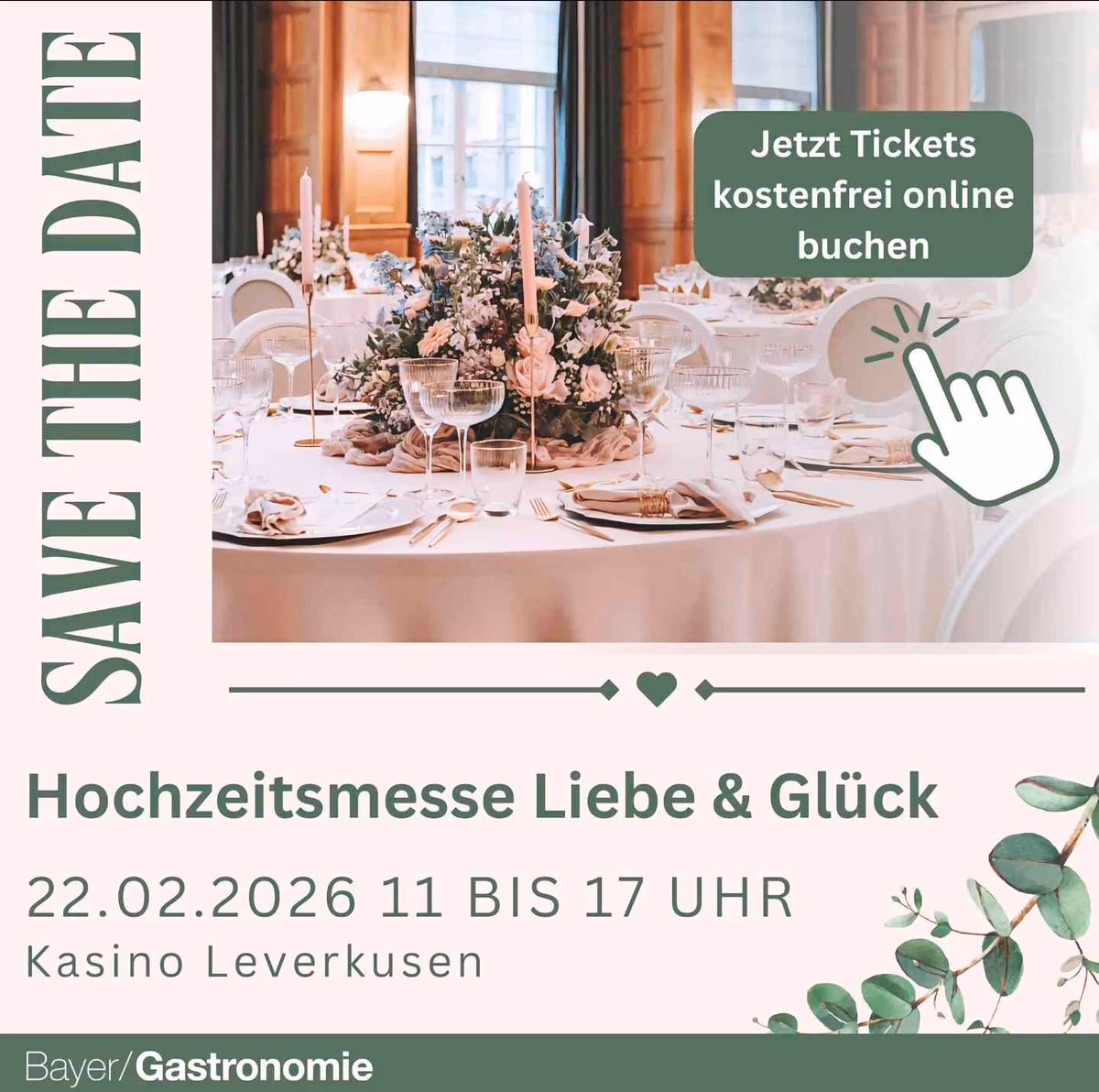 A magical journey to your perfect wedding begins at Hochzeitsmesse Liebe & Glück. On February 22, 2026, from 11:00 to 17:00, Kasino Leverkusen transforms into a dreamland for future brides and grooms. Discover everything you need for your special day, from breathtaking decorations and exquisite catering to stunning bridal wear and inspiring ideas.