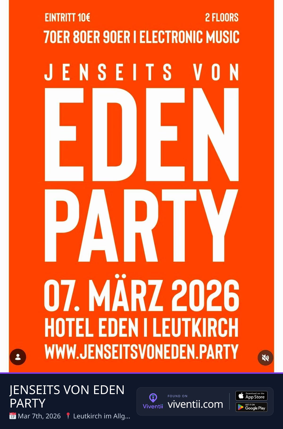 Dive into a nostalgic night where decades collide. The JENSEITS VON EDEN PARTY at Hotel Eden in Leutkirch im Allgäu on March 7, 2026, invites you to an electrifying journey through sound. Enjoy a vibrant mix of 70s, 80s, and 90s hits combined with pumping electronic music, spread across two dynamic floors. This adults-only event promises an unforgettable atmosphere for just 10€ entry. Find more details at www.jenseitsvoneden.party.