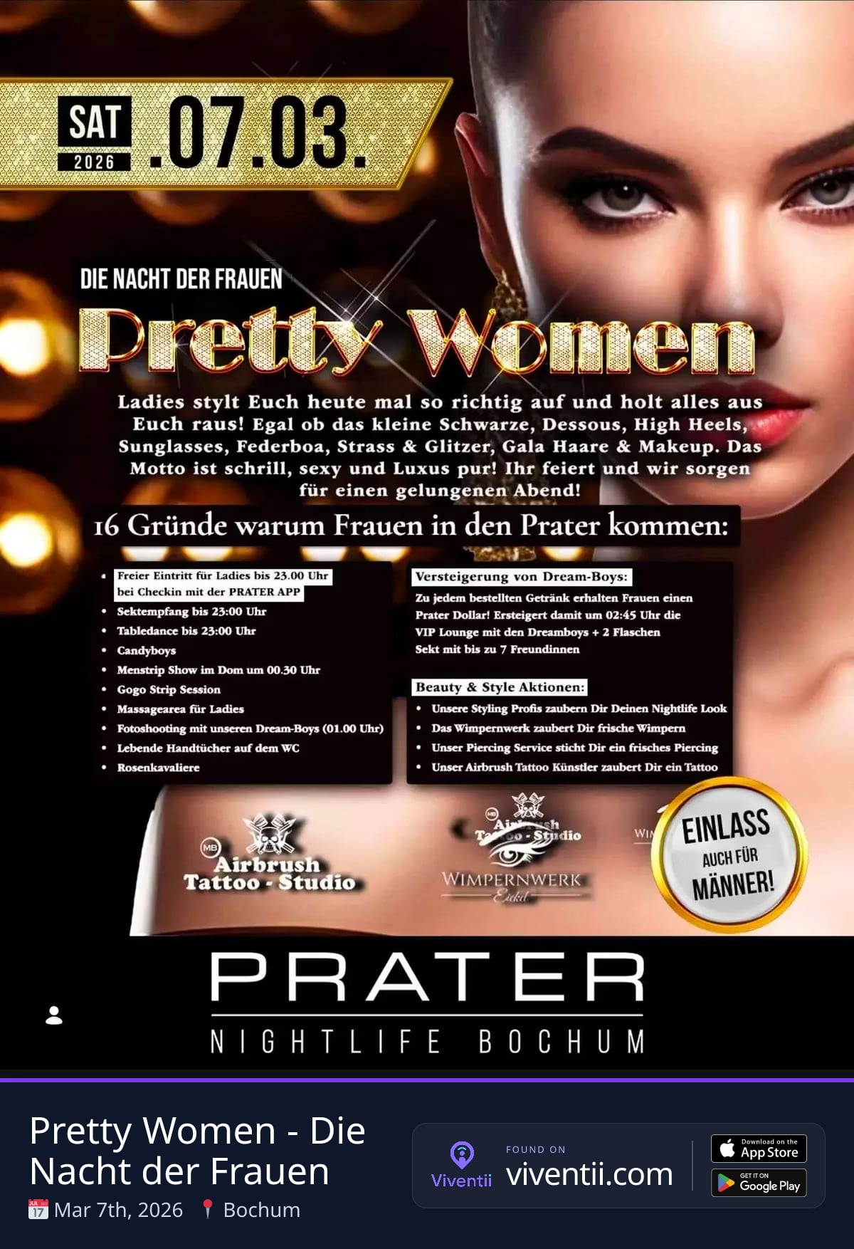 Join us from 22:00 at Prater Nightlife Bochum, Dorstener Straße 425, Bochum, Hofstede. This is the night to celebrate femininity in style!