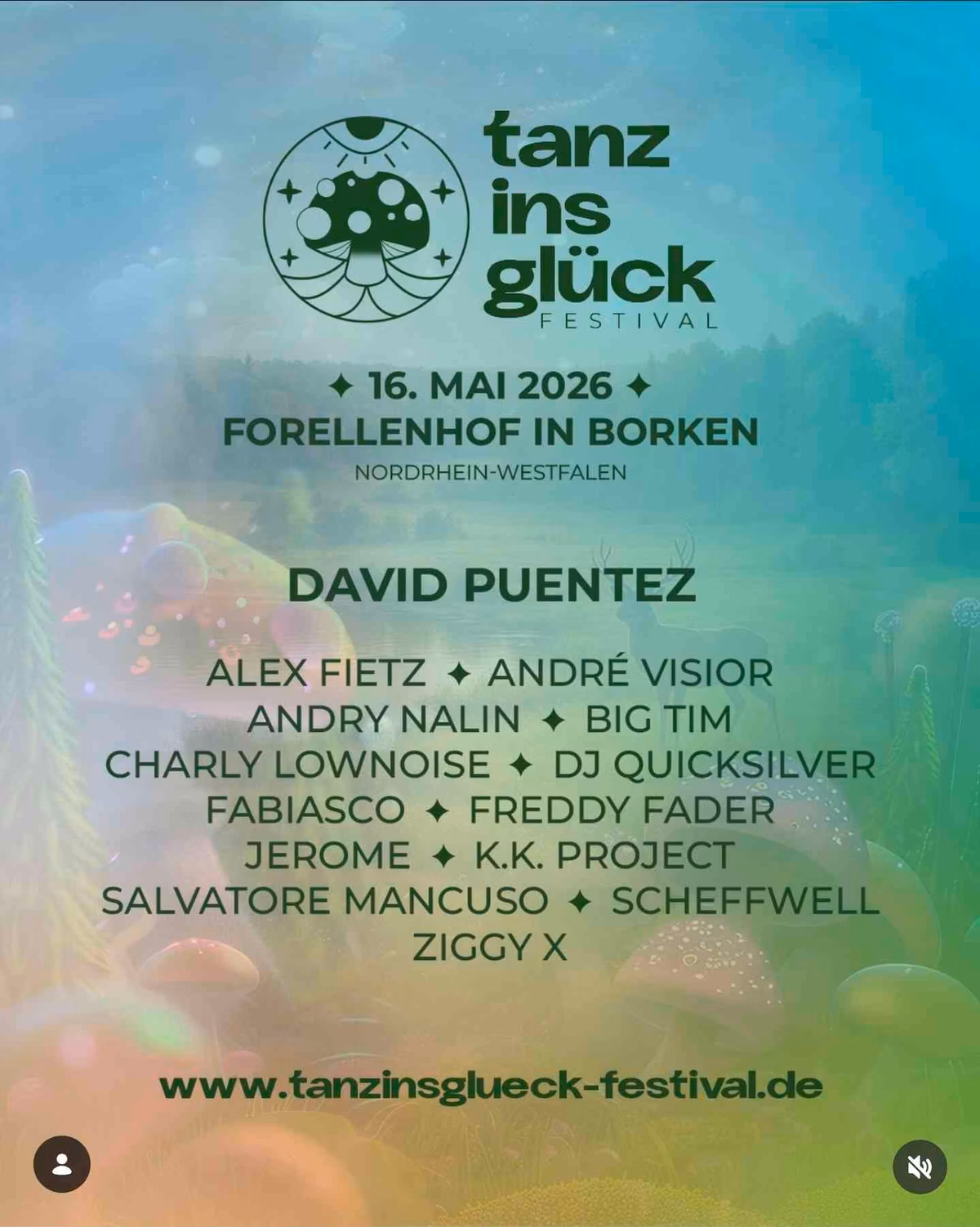 The tanz ins glück FESTIVAL invites you to an unforgettable night of electronic music on May 16, 2026, at the scenic Forellenhof in Borken, Nordrhein-Westfalen. Immerse yourself in a vibrant atmosphere where the beats will guide your every move. This one-day festival promises pure dance euphoria.