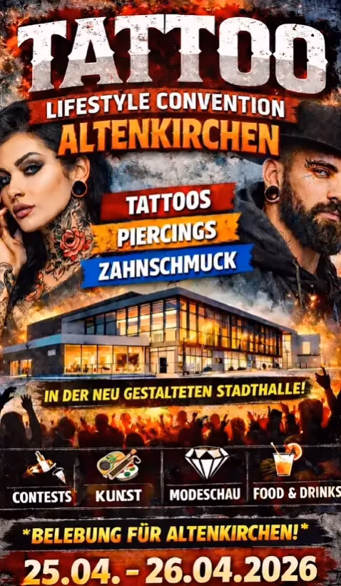 Immerse yourself in the vibrant world of body art and lifestyle at the Tattoo Lifestyle Convention Altenkirchen! Join us on April 25-26, 2026, at the newly designed Stadthalle in Altenkirchen.
